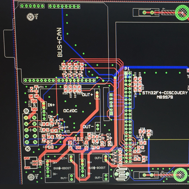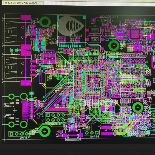 The design of this PCB involved high speed and differential signals. The routes lengths were adjusted with meanders.